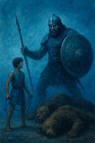 “Davi e Golias: coragem não é ausência de medo, é confiança em Deus.”