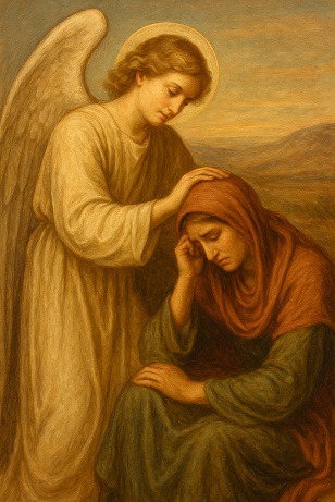Mesmo ferida e rejeitada, Agar foi alcançada pela graça. O anjo do Senhor a encontrou — prova de que Deus vê os esquecidos e escuta os que sofrem.